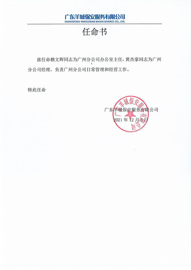 皇冠·app(官方)登录入口关于黄杰豪与赖文辉的任命书正式通知